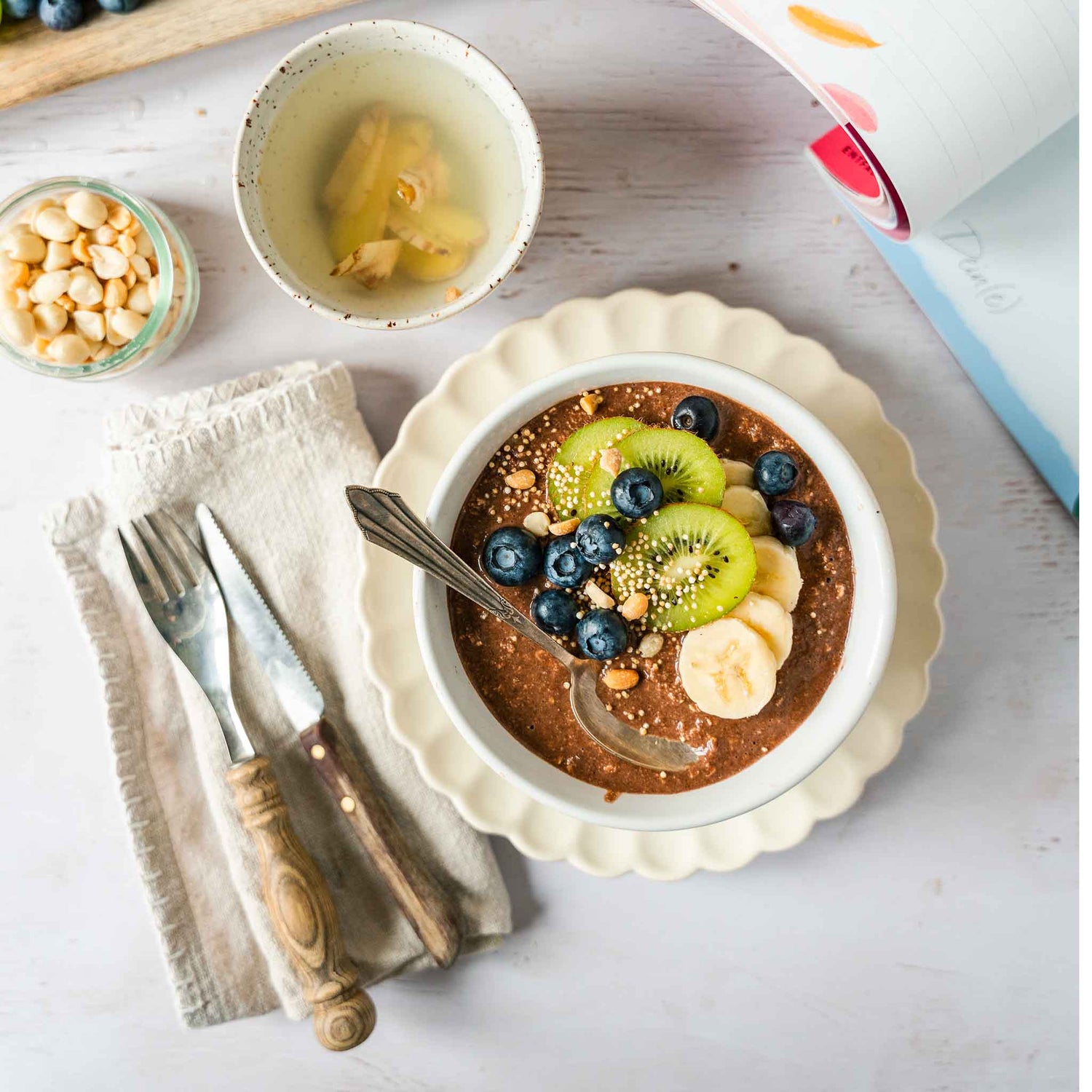 Füge die angegebene Menge Wasser, Pflanzendrink oder Milch deiner Wahl hinzu.