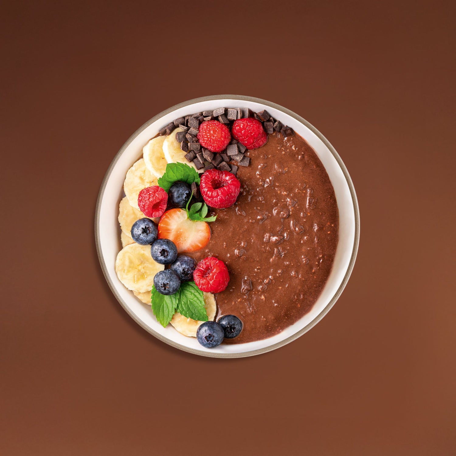 Die intensive Kakaonote und zartschmelzenden Schokochips sorgen für deinen cremig-schokoladigen Lieblingsmoment. Mit einer extra Portion Hafer- und Mandelprotein – süß, ganz ohne raffinierten Zucker, dafür mit royaler Power. Schmeckt wie frisch aus dem Ofen – nur schneller, pflanzlich und proteinreich. Bereit, deinen Tag zu veredeln?