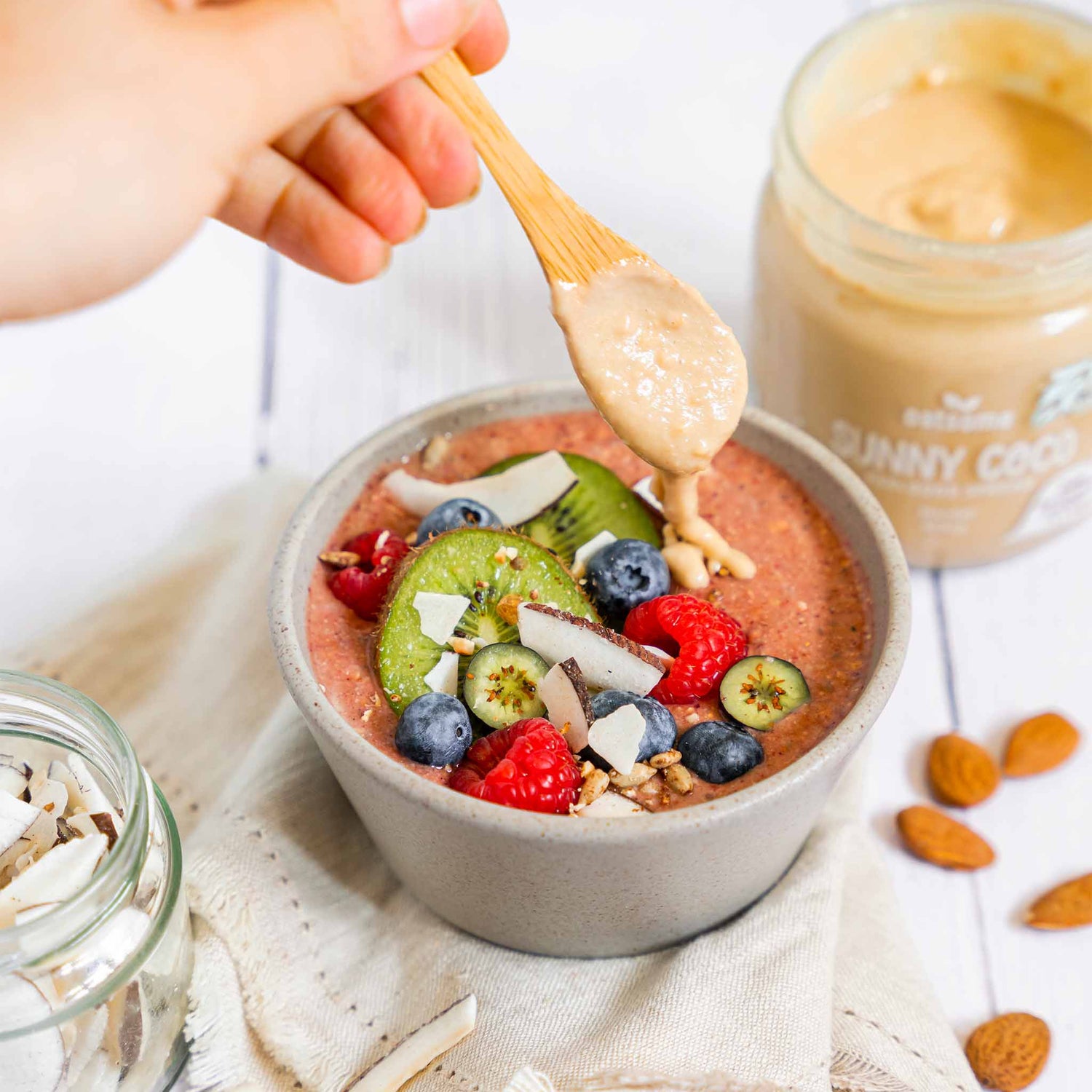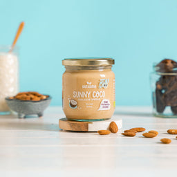 Streich das schlechte Gewissen und spread sunshine. Mit Sunny Coco kannst du den Morgen mit einem Strahlen beginnen. Der cremige Spread aus Mandeln, getrockneter Kokosnuss und leichter Dattelsüße sorgt mit seinem Mandel-Crunch für deinen Feelgood Moment.